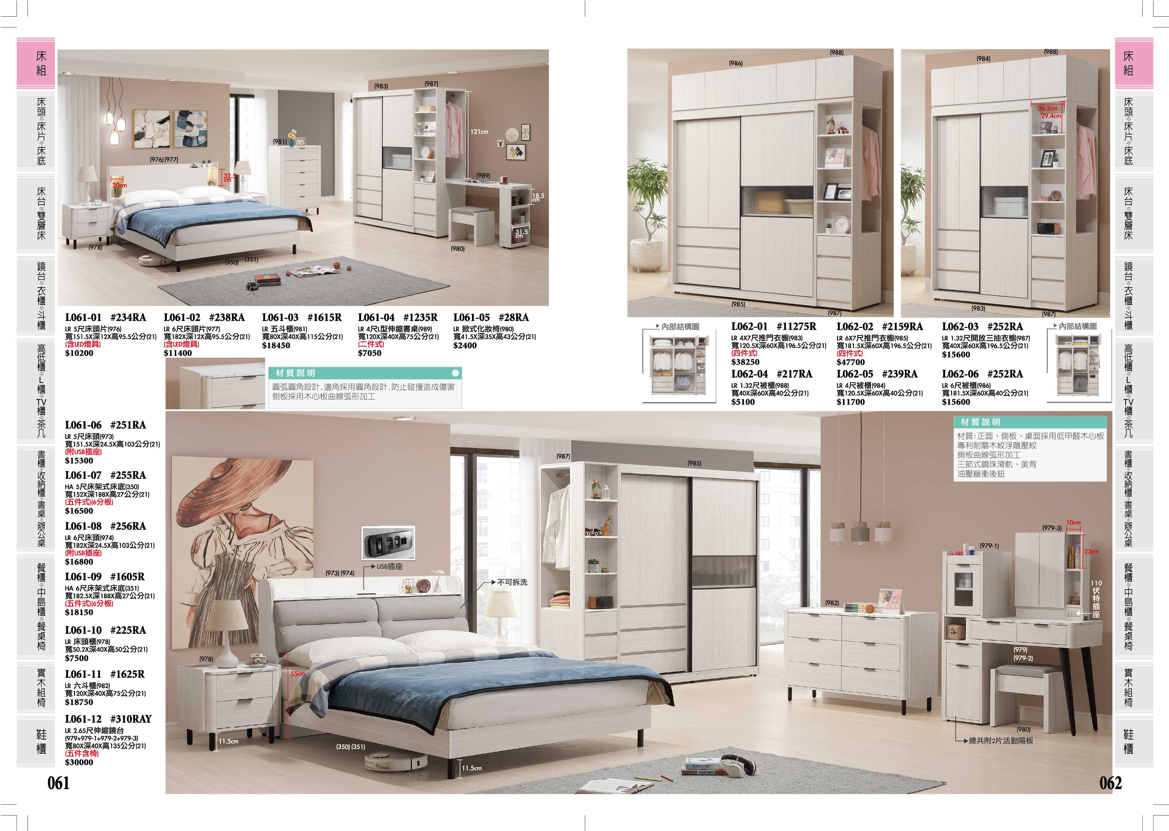 床組、雪杉白床組、5尺床組、6尺床組 、床頭、床片、床頭櫃、衣櫃、斗櫃、收納櫃、鏡台、床底、功能型床頭