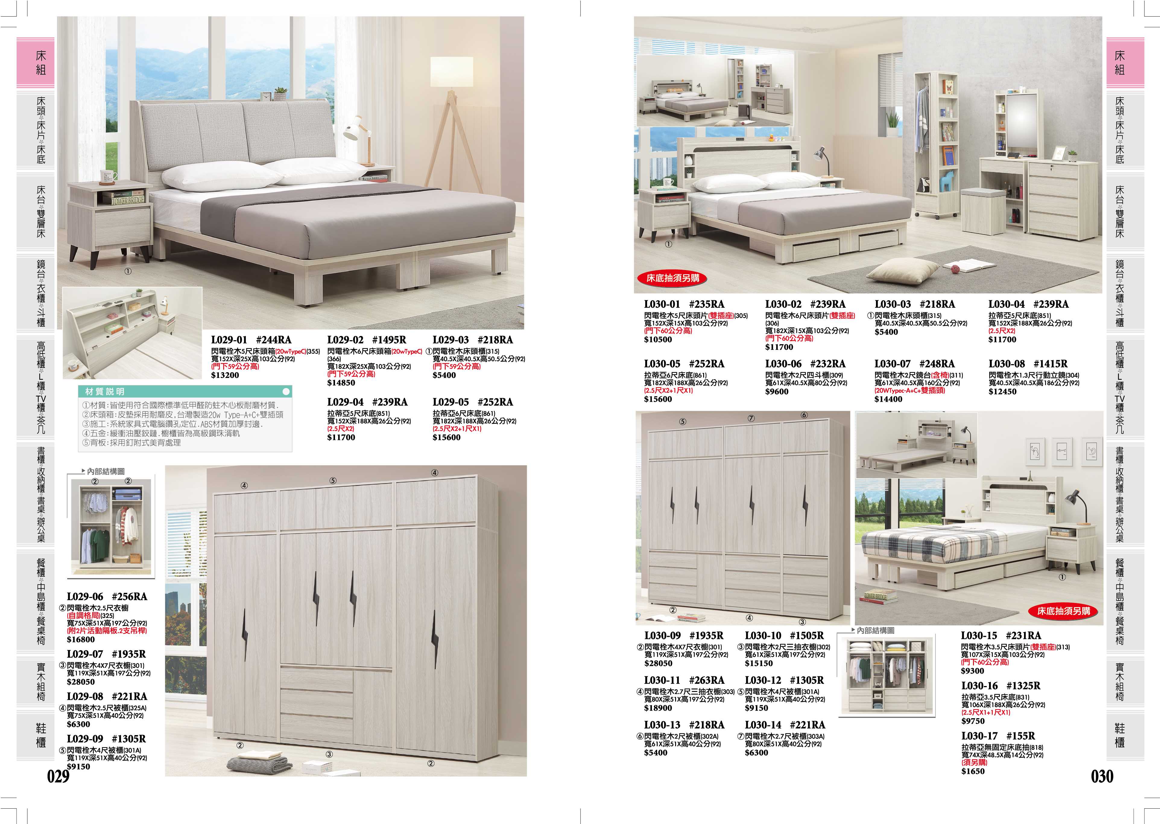 床組、雪杉白床組、5尺床組、6尺床組 、床頭、床片、床頭櫃、衣櫃、斗櫃、收納櫃、鏡台、床底、功能型床頭