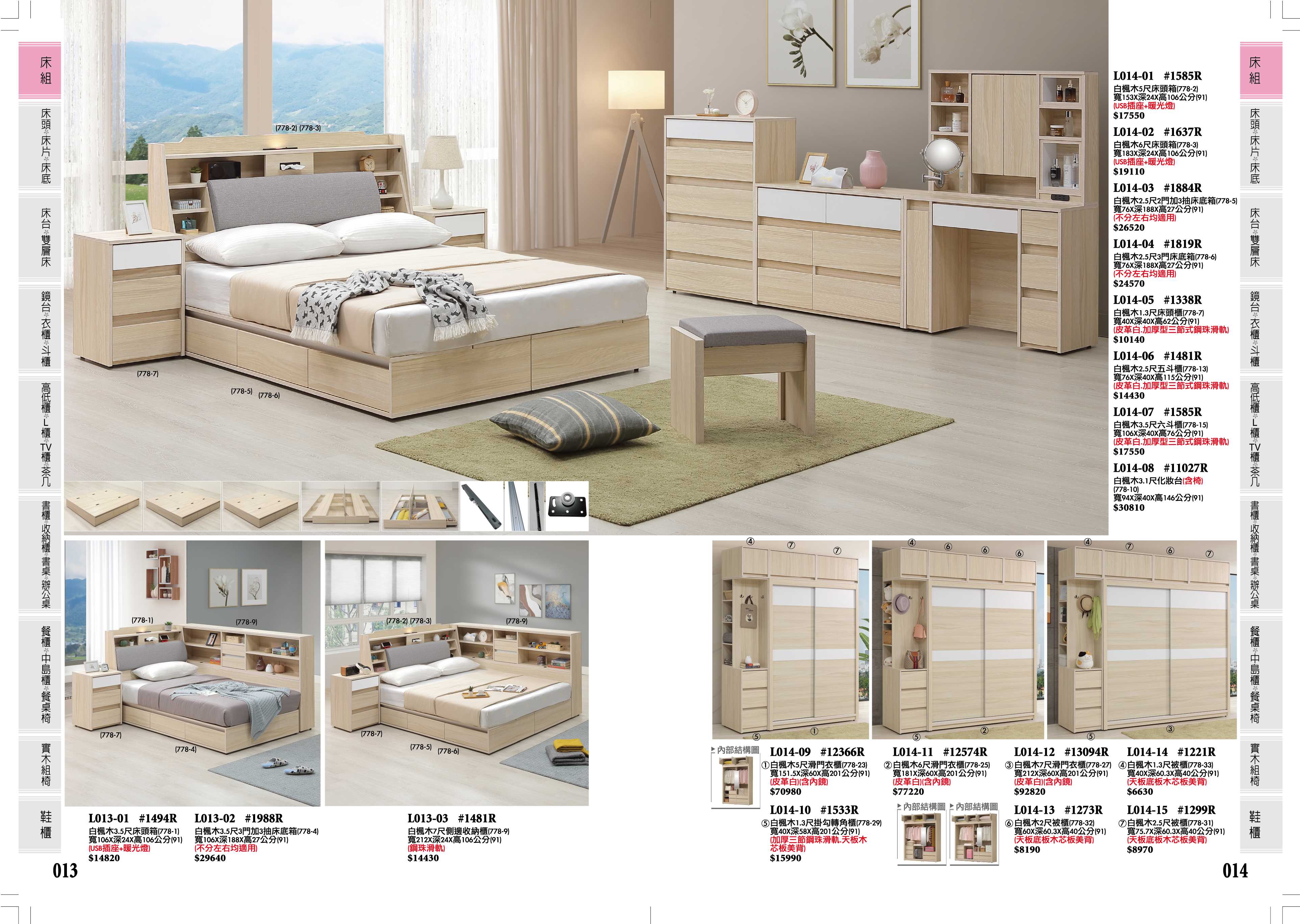床組、雪杉白床組、5尺床組、6尺床組 、床頭、床片、床頭櫃、衣櫃、斗櫃、收納櫃、鏡台、床底、功能型床頭